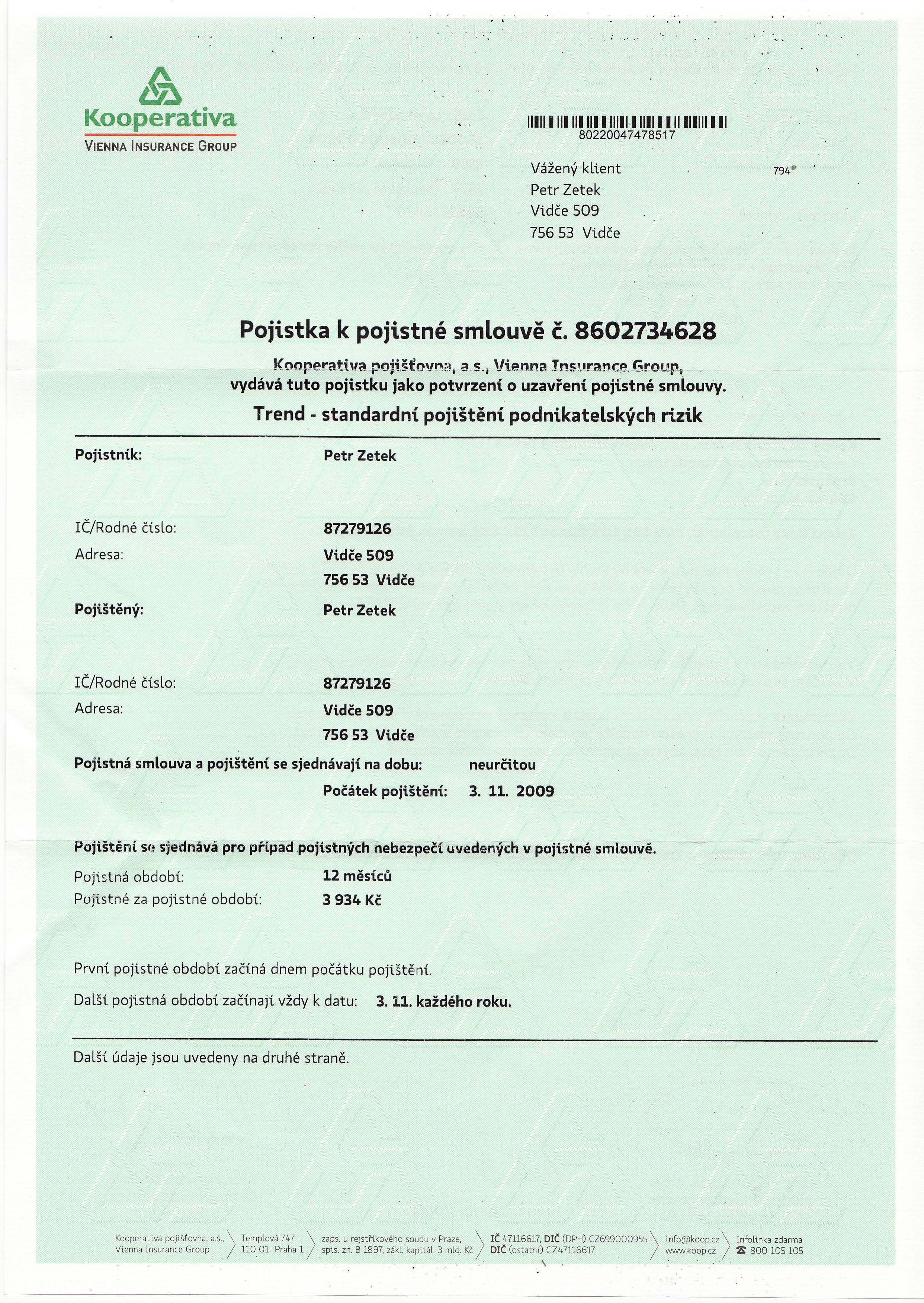Adresa provozovny