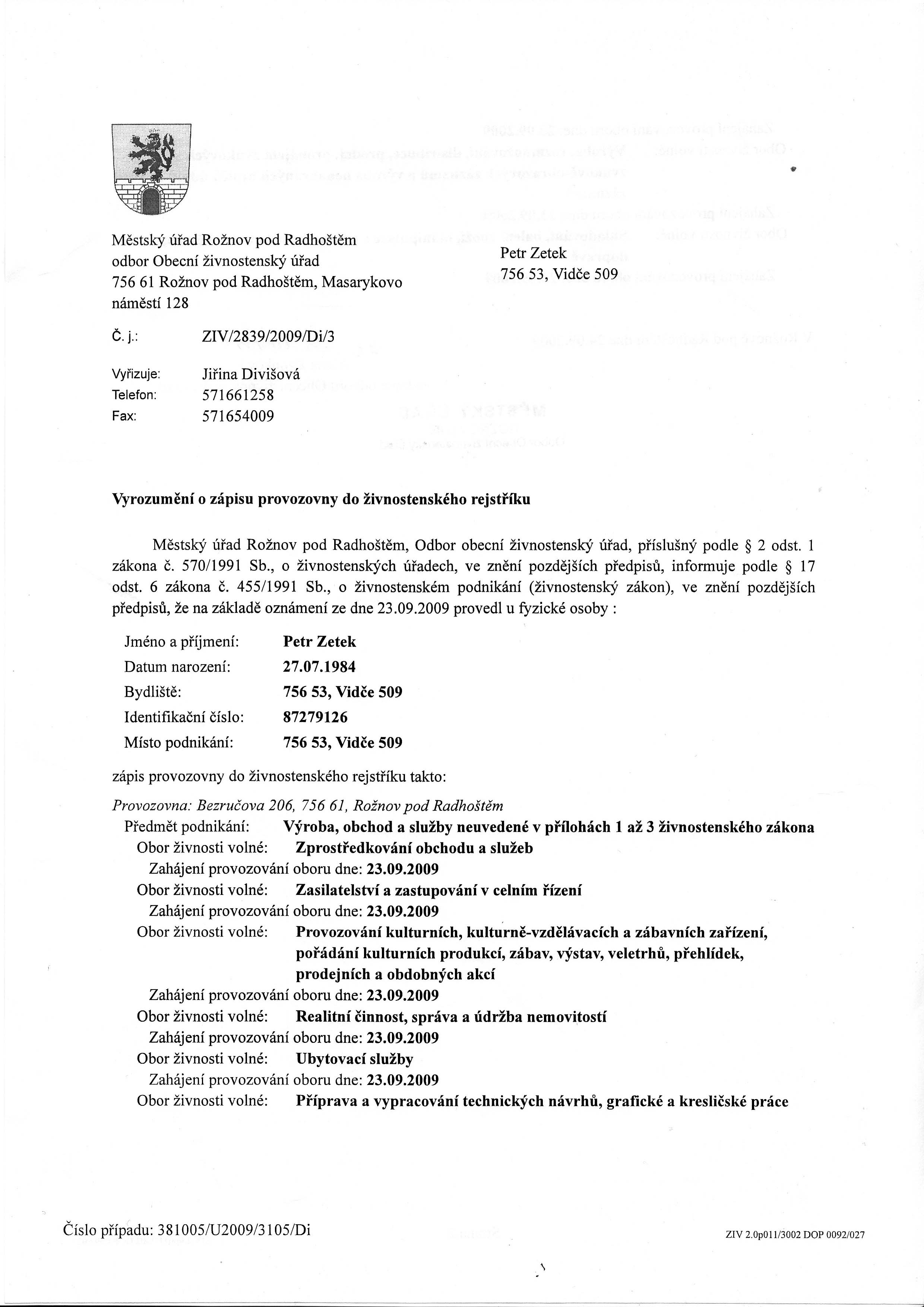 Přípravné a dokončovací stavební práce, specializované stavební činnosti - Zprostředkování obchodu a služeb - Skladování, balení zboží, manipulace s nákladem a technické činnosti v dopravě - Realitní...